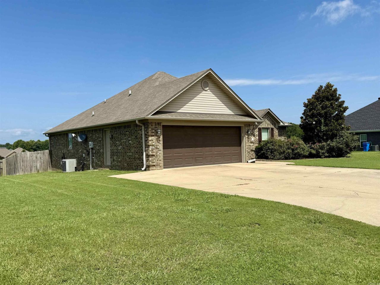 Well maintained 3 bed/2 bath home on .82 acres. Concrete floors throughout open floor plan. Kitchen features granite counters, stainless steel appliances, TWO pantries, and breakfast bar. Kitchen/dining/den are all open to each other making it a great house for entertaining. Living room is spacious features gas fireplace with stone surround. Primary bedroom is split and is highlighted with a tray ceiling, adjoining bathroom with jetted tub, walk in closet, long vanity w/ granite counters and walk in shower. Two guest rooms have great closet space as well. Large deck over looks backyard extends past actual fence line. Two car garage, gutters, great landscaping and nestled on a cul de sac road!